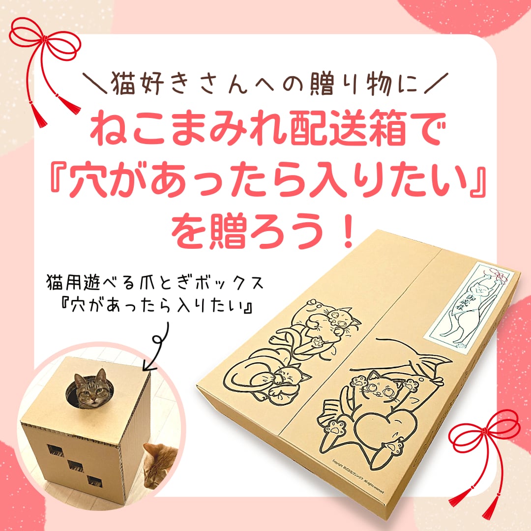 【ねこまみれ配送箱】遊べる猫用爪とぎボックス「穴があったら入りたい」【数量限定】